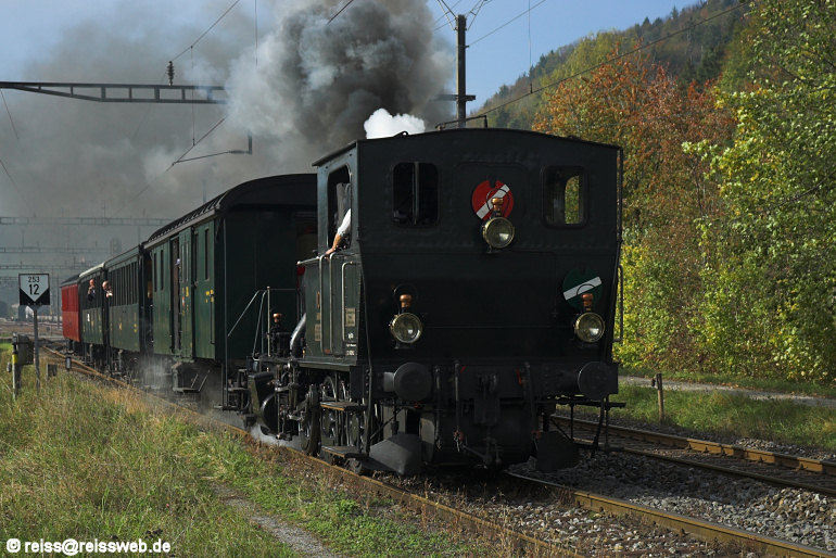 DVZO E 3/3 8518 fährt mit einem Sonderzug aus Bauma heraus nach Hinwil (13.10.2007).