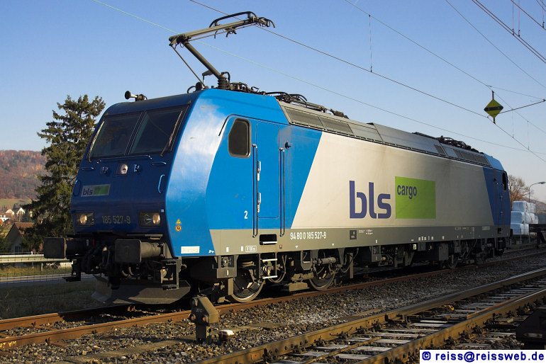 BLS-Mietlok 185 527 wartet am 17.11.2007 in Rekingen auf ihren nächsten Auftrag.