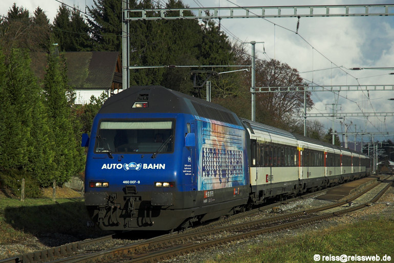 Nach langer Pause wieder einmal sonnige Momente - 460 007 "AMAG" kam genau passend mit den Sonnenstrahlen in Lottstetten vorbei (26.11.2007).