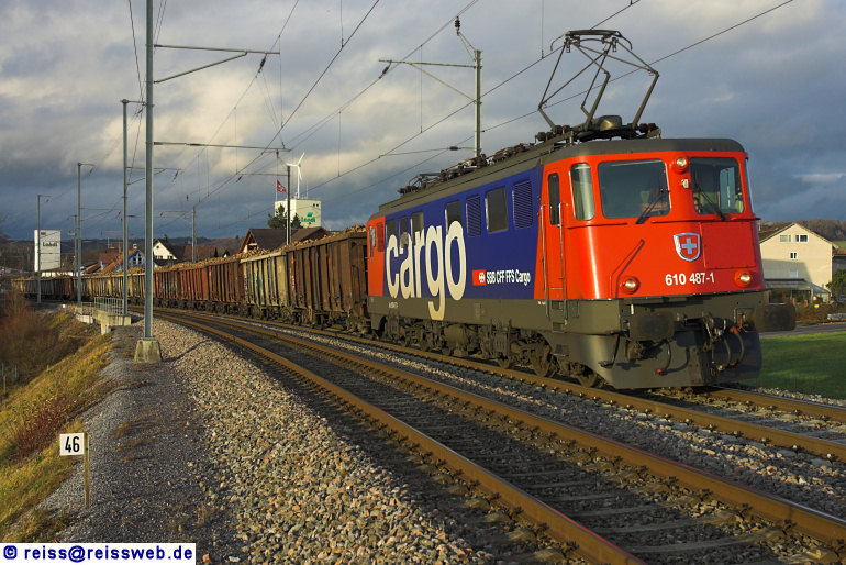 Versöhnlicher Abschluss eines eigentlich verregneten Dezembertages - rechtzeitig zur Abfahrt von Ae 6/6 610 487 mit der samstäglichen Rübenabfuhr aus Marthalen kam die Sonne heraus (08.12.2007).