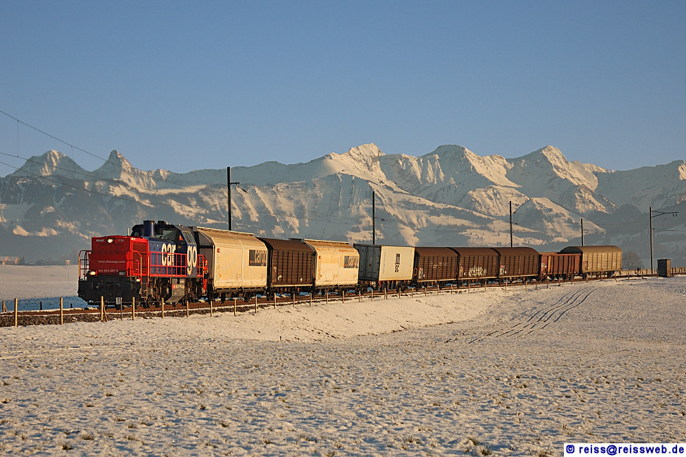 Es gibt Fotostellen, die man immer wieder besucht. Bei einem Besuch in der Region Bulle bin ich daher auch immer in Sâles - Am 843 087 bringt am Spätnachmittag des 20.12.2007 (wie auch am