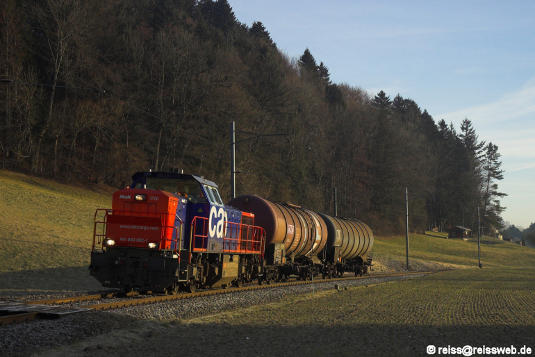 Mit der Cargo-Übergabe von Huttwil nach Affoltern-Weier ist Am 843 062 kurz vor Dürrenroth unterwegs (29.01.2008)