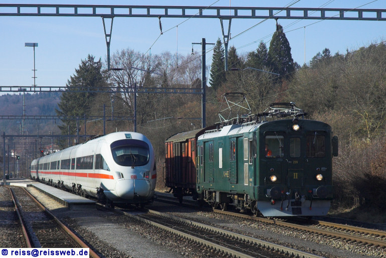 VHB De 4/4 259 bringt am 03.02.2008 einen ehemaligen SBB-Gbs (zuletzt Magazinwagen im Bahnhof Langenthal) von Huttwil nach Schaffhausen, der Wagen wurde vom
