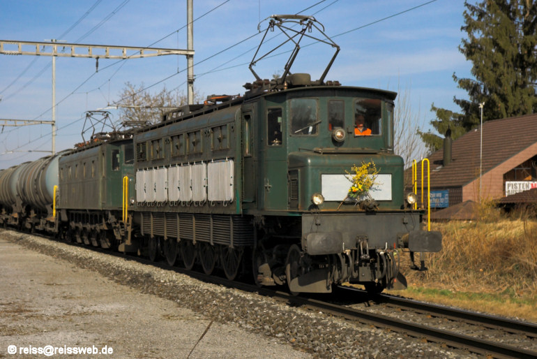 Einfahrt des Kesselwagenzuges Basel - Tanklager Rümlang in die Station Rümlang (28.02.2008).