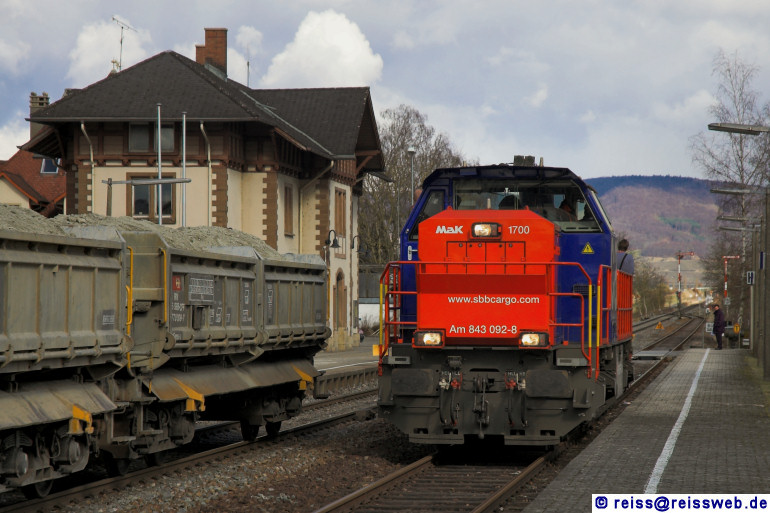 Am 843 092 umfährt die Wagen mit Aushubmaterial in Wilchingen-Hallau (04.03.2008).