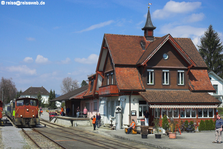 Triengen - Endpunkt der Sursee-Triengen-Bahn, der BLS-Charterzug hat den Prellbock erreicht. Nach kurzer Fotopause geht es mit dem Tm IV an der Spitze zurück nach Sursee (05.04.2008).