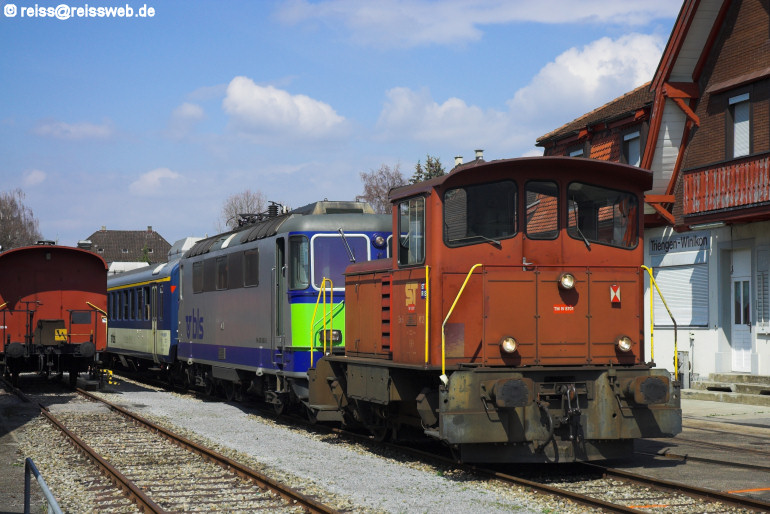 Nochmals der BLS-Charterzug in der Endstation der Sursee-Triengen-Bahn, es wurde bis an den Prellbock gefahren (05.04.2008).