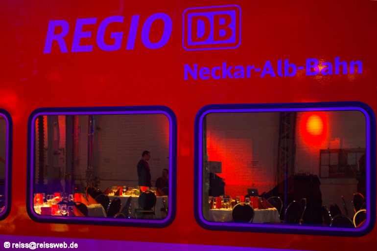 Lichtstimmung im Bw Tübingen aus Anlass des Festakts zur Inbetriebnahme der Doppelstockwagen auf der Neckar-Alb-Bahn (25.04.2008).