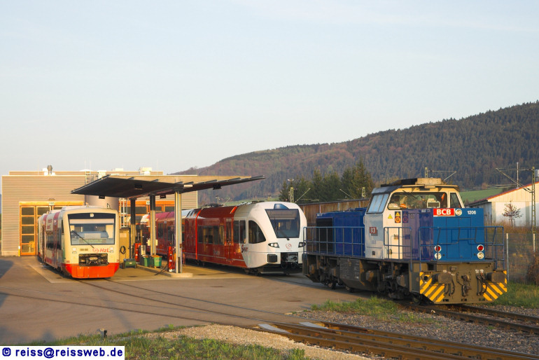 Kurz nach Sonnenaufgang warten im Ringzug-Bw Immendingen die für die Niederlande bestimmten ARRIVA-GTW auf die Weiterreise, auch die bis Kornwestheim als Zuglok eingeteilte G1206 der