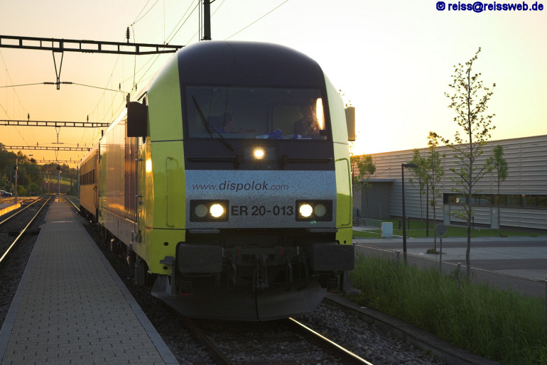 Im letzten Licht des 10.05.2008 wartete ER 20-013 auf einen entgegenkommenden Zug in Tägerwilen, sie war in IGE-Diensten von Basel nach St. Margrethen unterwegs.
