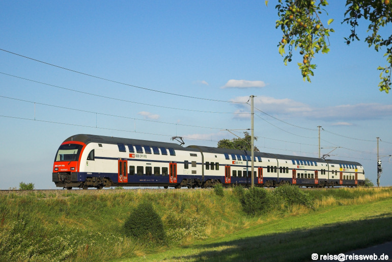 Durch den Ausfall des ICE 180 Zürich - Stuttgart am Abend des 16.07.08 kam eine DTZ-Einheit (in diesem Fall 514 016) zu ICE-Ehren und führte einen Ersatzzug von Zürich nach Schaffhausen, die Aufnahme entstand an der Lottstetter Fotowiese.