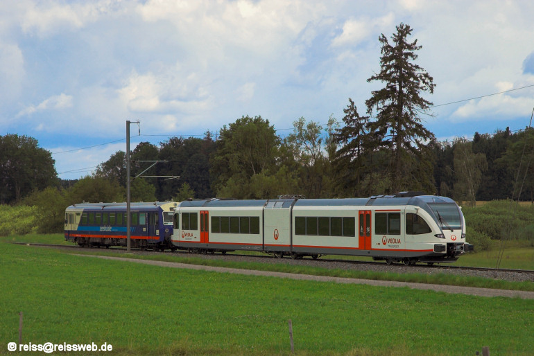 HzL VT62 mit Veolia-GTW auf der Fahrt von Bussnang nach Konstanz - Radolfzell (Berg, 21.07.2008).