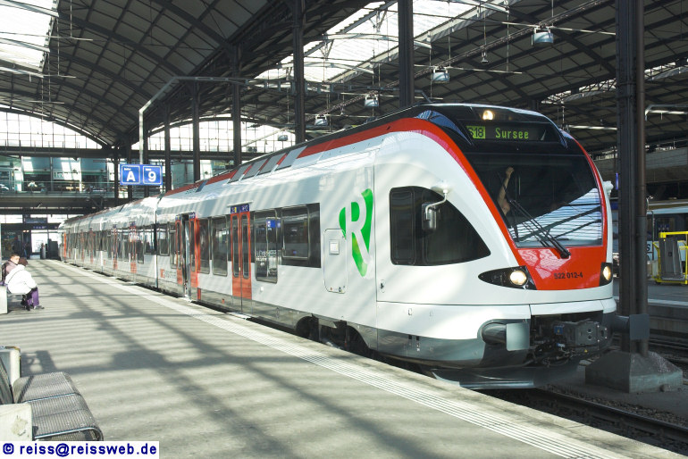 Der letzte - ursprünglich für den grenzüberschreitenden Einsatz nach Frankreich gebaute - Flirt aus der Reihe 522.0 ist inzwischen auf der S-Bahn Innerschweiz im Einsatz. Am 04.02.2009 wartet 522 012 im Bahnhof Luzern auf die Abfahrt nach Sursee.