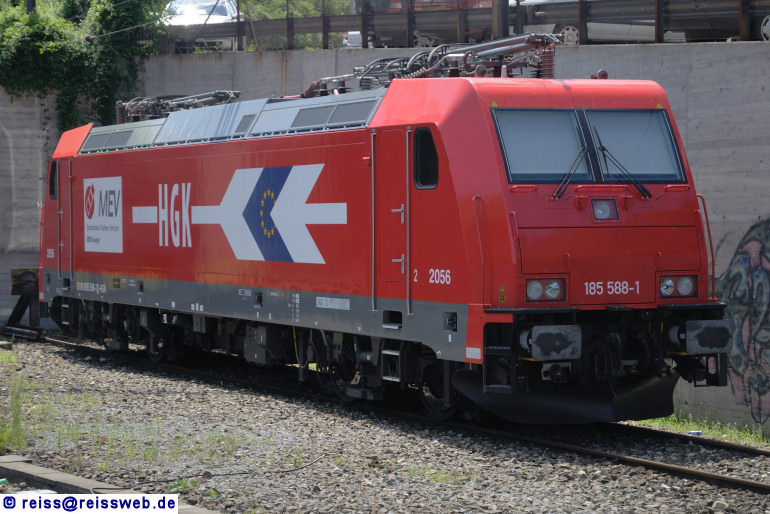 185 588 der HGK verbringt ein gemütliches Wochenende in Glattbrugg (CH) - sie hatte einen Kesselwagenzug aus Deutschland gebracht und wird ihn nach der Entladung auch wieder zurückbringen (03.08.08).