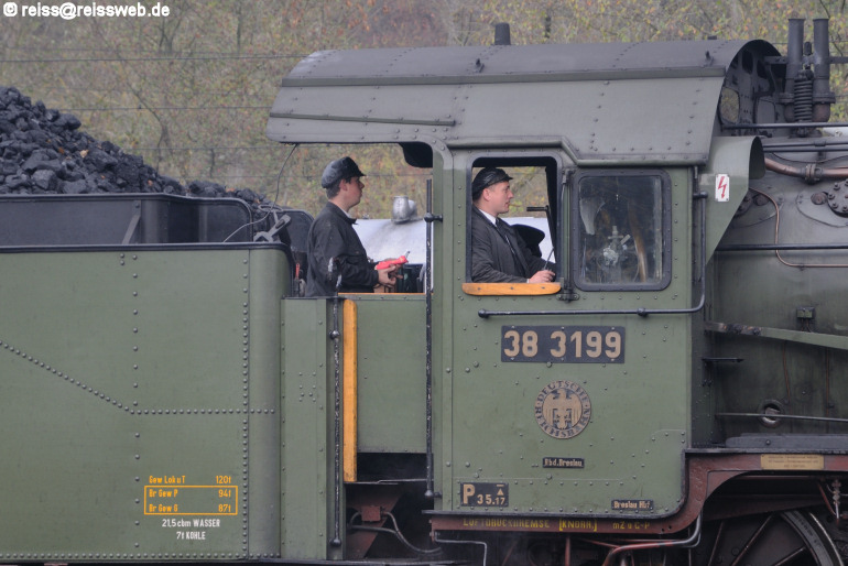 Momentaufnahme der 38 3199 und ihres Personals - der "Meister" standesgemäss mit einer Zigarre... (Rottweil, 02.11.2008).
