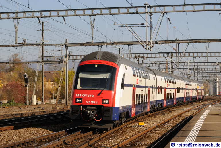 514 050 ist am 15.11.08 unterwegs ins bernische Burgdorf - zur 150-Jahr-Feier der Strecke Bern - Zürich wird er dort auf den Namen "Züri West" getauft. Aufgenommen wurde er bei der Einfahrt in Aarau.