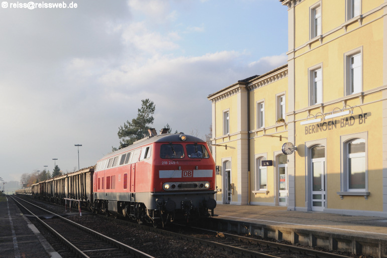 218 249 wartet in Beringen einen IRE ab, noch bis zum Fahrplanwechsel im Dezember 2008 ist zwischen Neuhausen und Beringen nur ein Gleis befahrbar (17.11.2008).