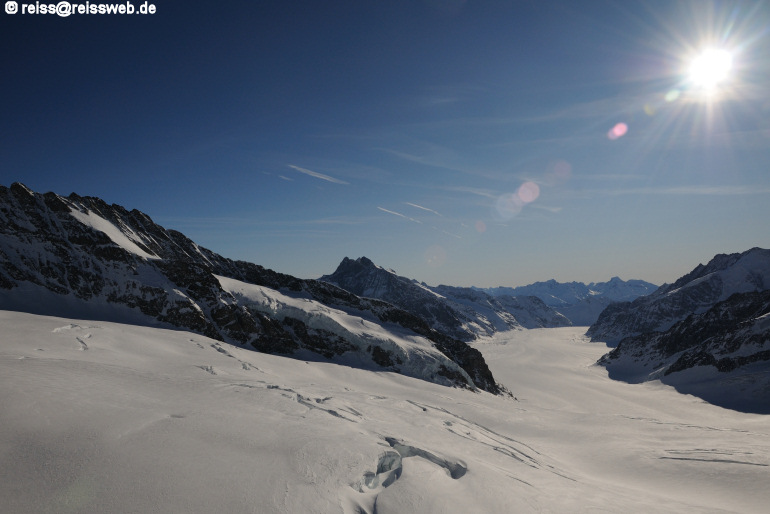Blick vom Jungfraujoch Richtung Süden auf den Beginn des Aletsch-Gletschers (24.12.2008).