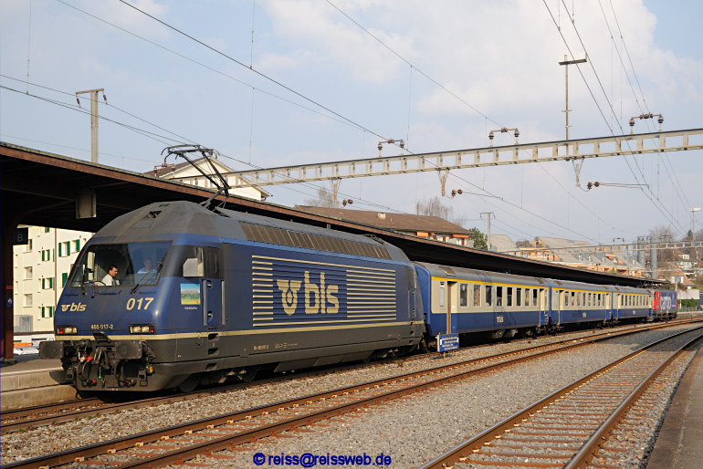 BLS 465 017 & Ae 6/6 610 486 haben im Rahmen einer Sonderfahrt des englischen Reiseveranstalters "Cahrters Helvetia" den Bahnhof Stäfa erreicht (04.04.2009).