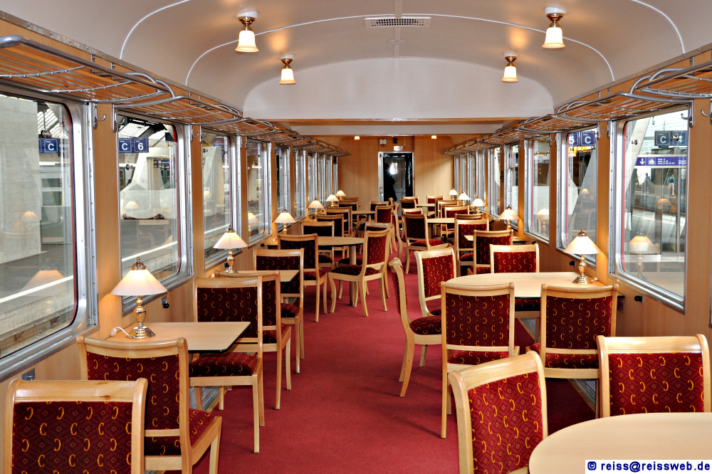 Speisewagen des Swiss Classic Train mit 44 Plätzen (Zürich, 11.06.2009).