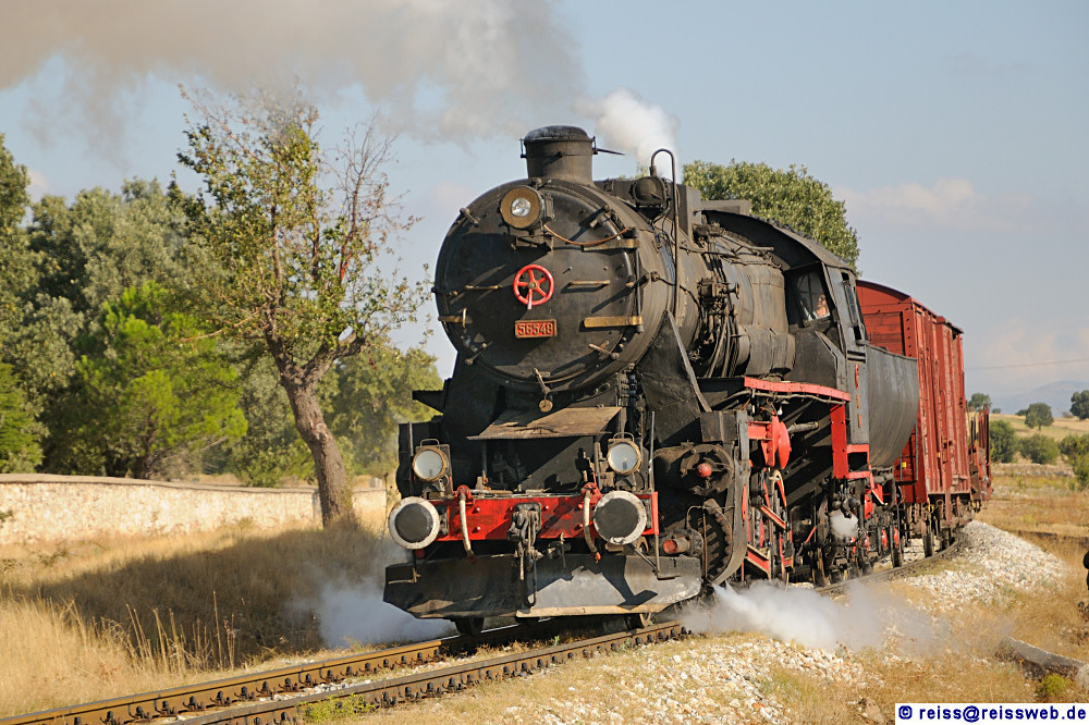 TCDD 56548 macht eine "Scheindurchfahrt" für die Fotografen des Sonderzuges, der auf dem Weg von Uşak nach Alaşehir ist. Die Aufnahme entstand zwischen Uşak und Eşme (20.09.2009).