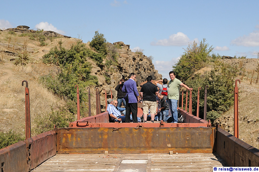 Eine Mitfahrt auf einem der Flachwagen war möglich und wurde geduldet. Teilweise waren sogar Camping-Stühle an Bord (21.09.2009).