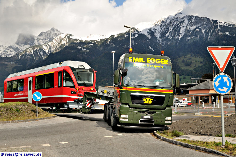 Dieser Kreisel am Ortsrand von Landquart war für den Schwertransport eine der anspruchvollsten Passagen (13.10.2009).