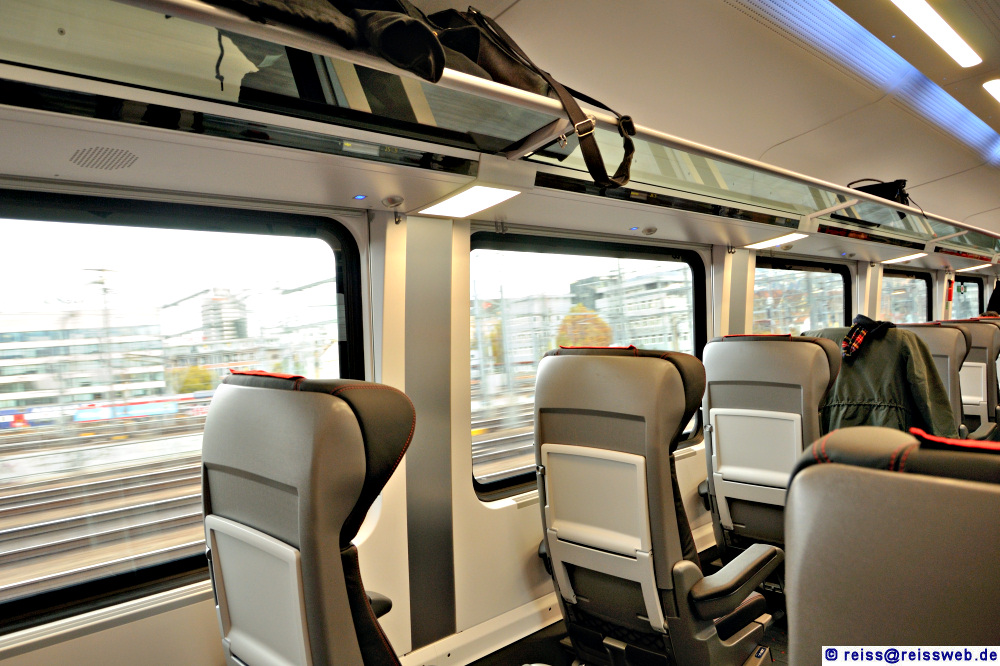 Auf den Sitzteiler wurde beim Railjet wenig Rücksicht genommen – wer Pech hat, reist in der ersten Klasse ohne Aussicht (09.11.2009).