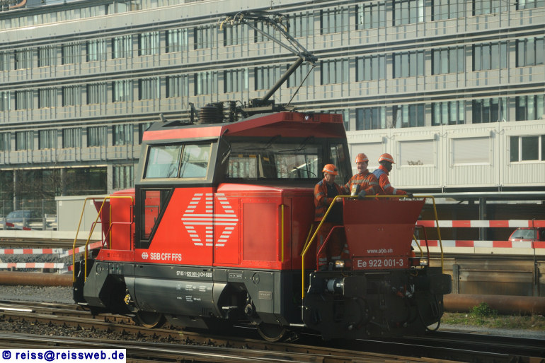| Ee 922 001 wird (zusammen mit Ee 922 002) im Zürcher HB eingesetzt. Bis allerdings alle 21 Loks ausgeliefert sind, werden die Ee 3/3 weiterhin eingesetzt. Als Einsatzorte sind Basel, Bern, Biel, Brig, Chur, Luzern, St. Gallen und Zürich vorgesehen (Zürich HB, 12.04.2010). |