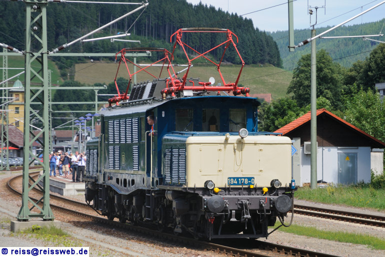 194 178 rangiert in Baiersbronn, nachdem sie den Sonderzug "Murgtaldampf" hierher gebracht hatte (01.08.2010).