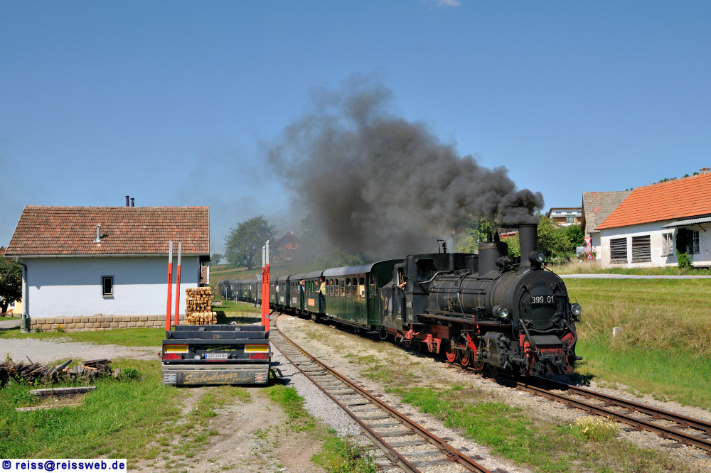 399.01 von den Waldviertler Schmalspurbahnen fährt mit dem Nachmittagszug von Gmünd in St. Martin ein (21.08.2010).