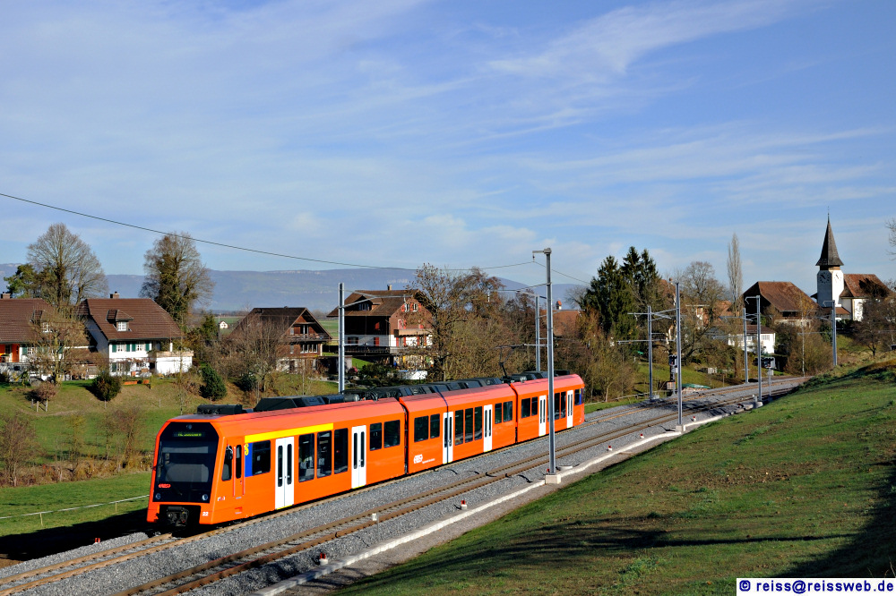 Next Nr. 22 des Regionalverkehrs Bern-Soluthurn (RBS) hat die Station Grafenried in Richtung Solothurn verlassen. Seit Sommer 2010 ist der Abschnit Grafenried - Fraubrunnen zweigleisig ausgebaut (14.11.2010).