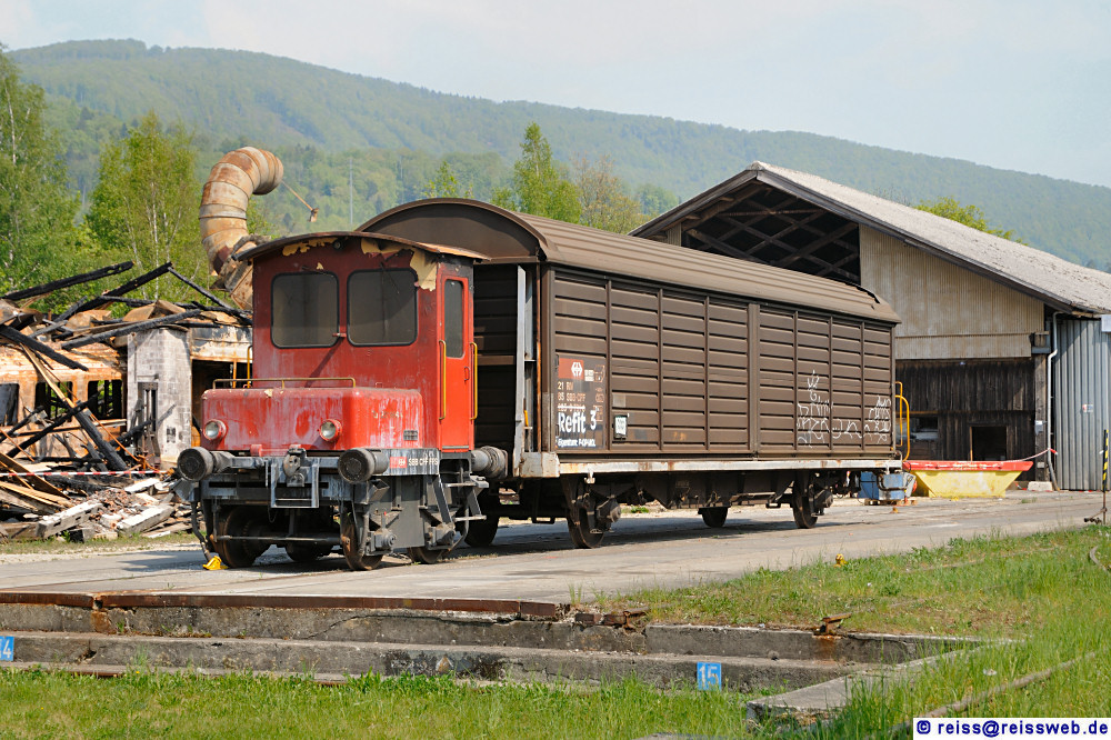 | [Stadler L-176, 1987] Als Nachfolger der 1910 gebauten Akku-Traktoren "Tintenfisch" baute Stadler 1987 (Ta 251 966) einen und 1990 nochmals vier (Ta 251 002 - 005) dieser Traktoren. Ta 251 966 (der Prototyp) steht nach dem Brand vom 28.03.2011 noch in der HW Olten (21.04.2011). |