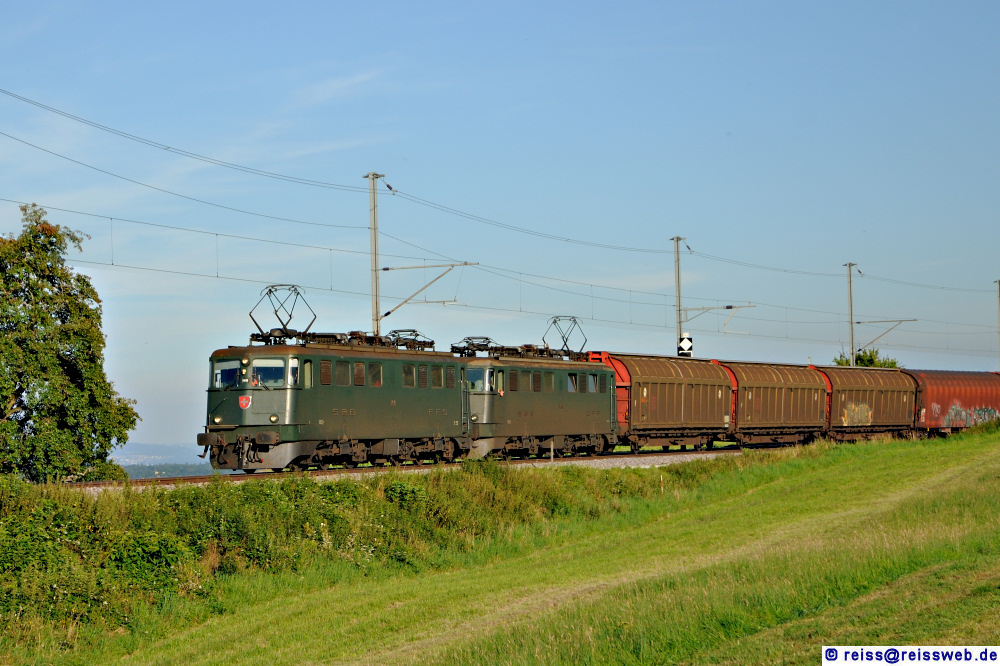 Ae 6/6 11515 & 11479 mit dem Güterzug 44692 RB Limmattal - Schaffhausen (- Singen - Kornwestheim). Die führende Lok geht in Schaffhausen vom Zug (Lottsttetten, 31.07.2012).
