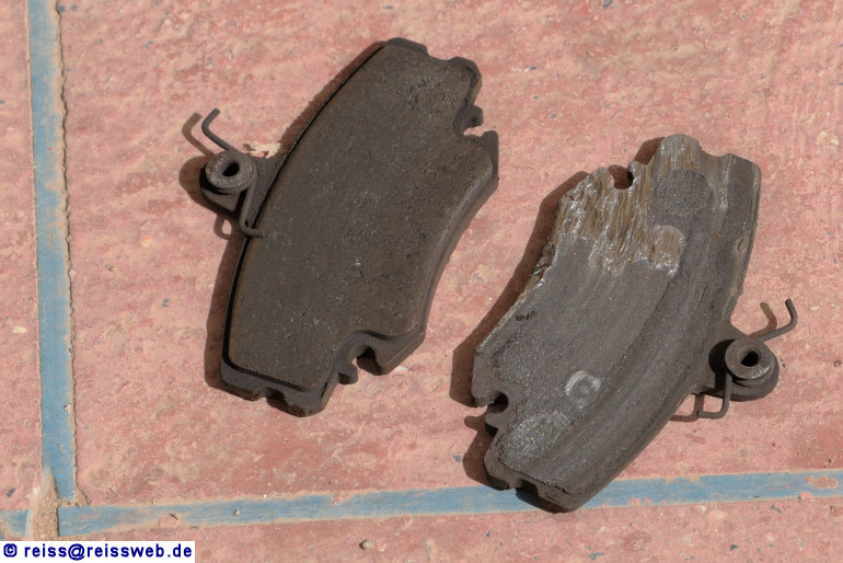 Der Bremsbelagsatz vorne rechts war total abgefahren - eine Inspektion oder Durchsicht vor der Wagenübergabe hätte nicht geschadet (Oujda, 29.09.2012).