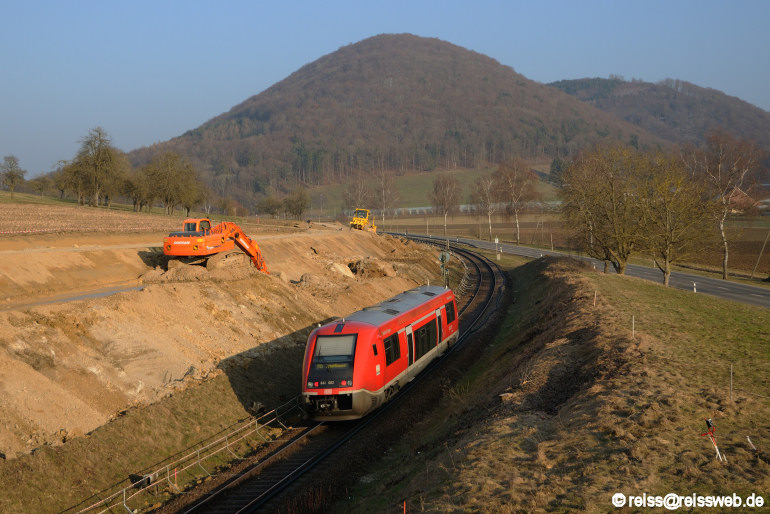 Ein Blick in die andere Richtung zeigt, dass der Trassenausbau längst begonnen hat (Neunkirch, 03.03.2013).