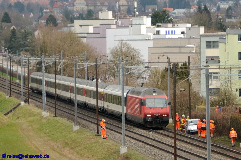 Auto im Gleis hiess es am 21.03.2013 zwischen Frauenfeld und Islikon - eine 82jährige Autofahrerin geriet mit ihrem PKW in den Gleisbereich. Betroffen war 460 092 mit IR 2122 Konstanz - Biel.