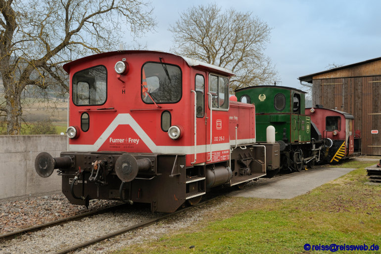 Am 07.04.2013 waren Köf III 332 215, Lok 1 "Laufenburgerli" (nicht einsatzfähig, HU abgelaufen) und Köf II 322 660 vor dem Fützener Schuppen abgestellt.