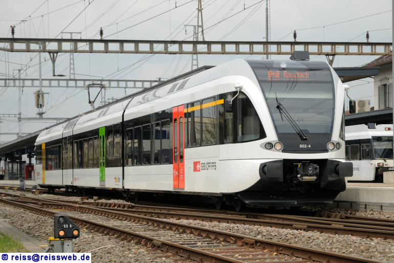 Mit GTW 526 802 ist die Lieferung der im November 2010 nachbestellten Züge (791 - 802) abgeschlossen. Am 23.04.2013 verlässt er als S 7 Weinfelden - Romanshorn die Station Weinfelden.