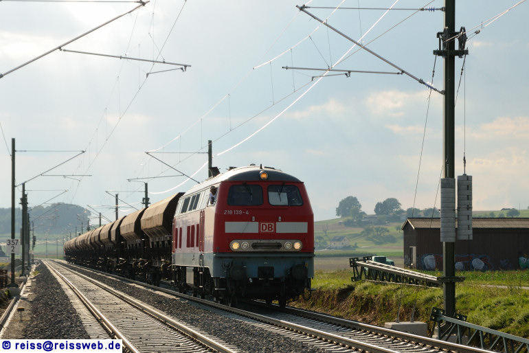 218 139 fährt mit einem Schotterzug in Beringen ein (29.08.2013).