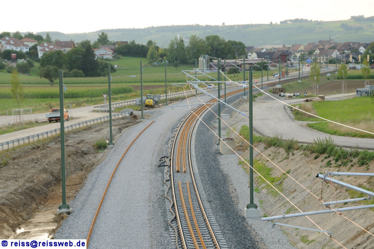 Blick von einer neu angelegten Brücke bei Km 352.8 Richtung Neunkirch. Die Aufnahme entstand am 29.08.2013.