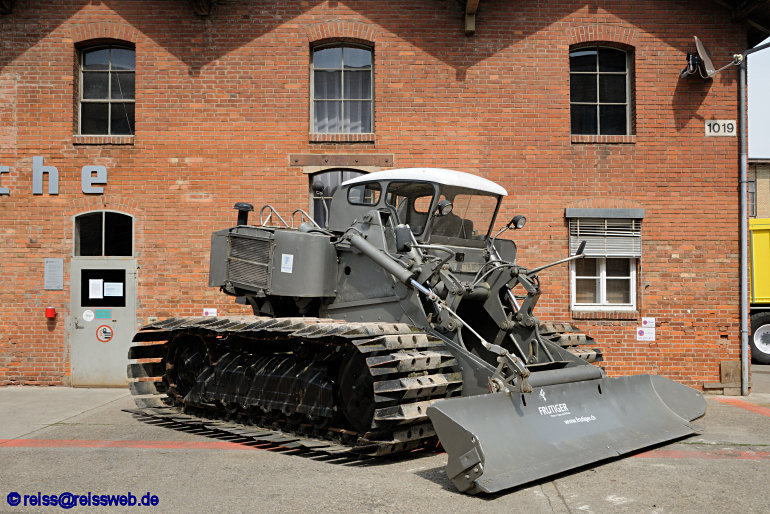 Eine Frutiger Schürfraupe war eine der vielen attraktiven Exponate, die nicht aus dem Schienenfahrzeugbereich stammten (Winterthur, 25.04.2014).