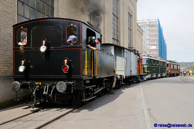 Ein Lokzug mit Ed 3/4 ex SMB Nr. 2, Te II 130, Ae 6/6 11407 und BLS Ae 4/4 251 hat die Steigung vom Bahnhof Winterthur hinauf zur SLM-Einfahrt geschafft (25.04.2014).