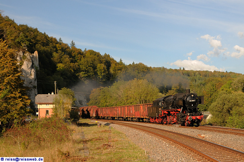 ((zukünftig DSB - Dampfbahn Schwarzwald-Baar e.V.) führte einen Fotogüterzug für ausgewählte Teilnehmer von Rottweil nach Mengen und zurück (Inzigkofen, 29.09.2014).