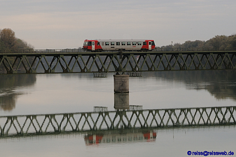 Ein unbekannter 5047 überquert als Zug 5967 Simbach (D) - Neumarkt Kallham (A) die Innbrücke zwischen Simbach und Braunau. Zwischen Dez. 2008 und Dez. 2012 fuhr hier ein Zugpaar Linz - München und zurück mit