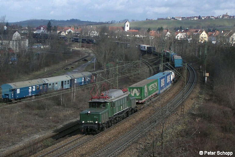 Seltener Einsatz für 194 158 vor einem planmässigen Güterzug - wg. einer defekten Dispo-189 führt sie den Zug 40027 von Emmerich bis Weil a. Rhein. Das Foto wurde mir von Peter Schopp zur Vefügung gestellt (02.03.2007).