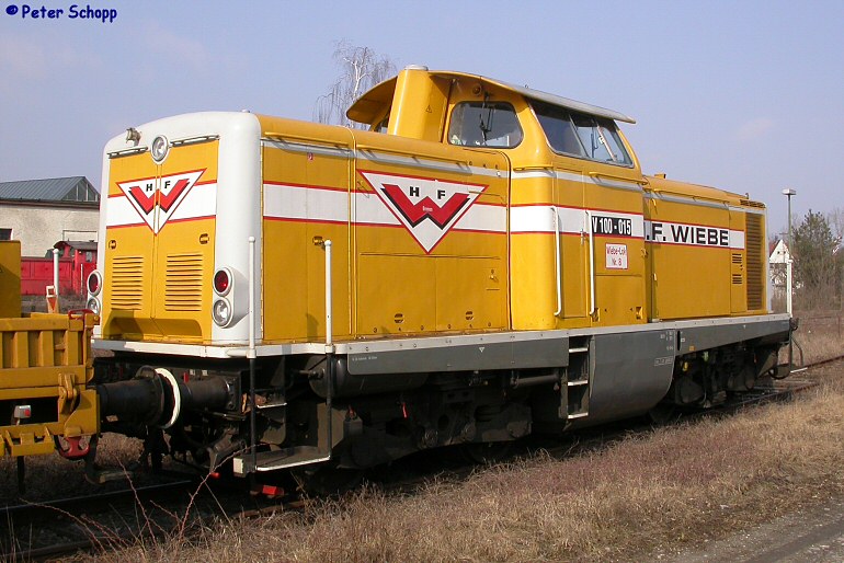 Wiebe Nr. 8, eine ehemalige V 100 der DB, steht am 26.02.2005 im Bh Haltingen. Das Foto wurde von Peter Schopp aufgenommen.