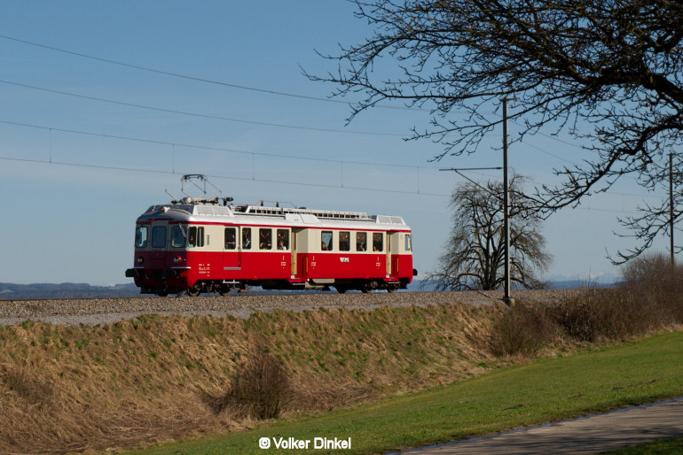 Am 04.03.2007 war BDe 4/4 Nr. 2 der ehemaligen Wohlen-Meisterschwanden-Bahn auf einer Sonderfahrt unterwegs - aufgenommen wurde er an der Lottstetter Fotowiese von Volker Dinkel.