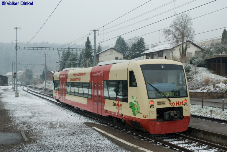 Volker Dinkel gelang eine Aufnahme des HzL-Regioshuttle beim Kreuzungshalt in Lottstetten (08.03.2008).