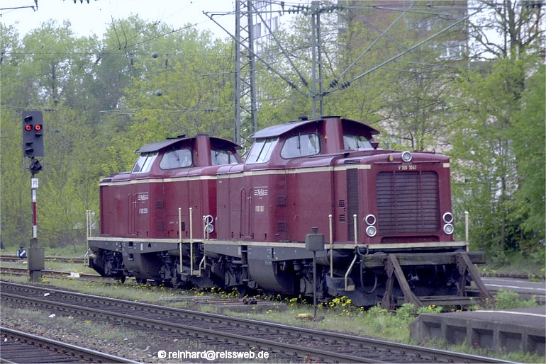 Die beiden NeSA-V 100 (V100 1041 und V100 2335) standen nach einer vorausgegangenen Leistung noch mehrere Tage in Singen (08.05.2002).